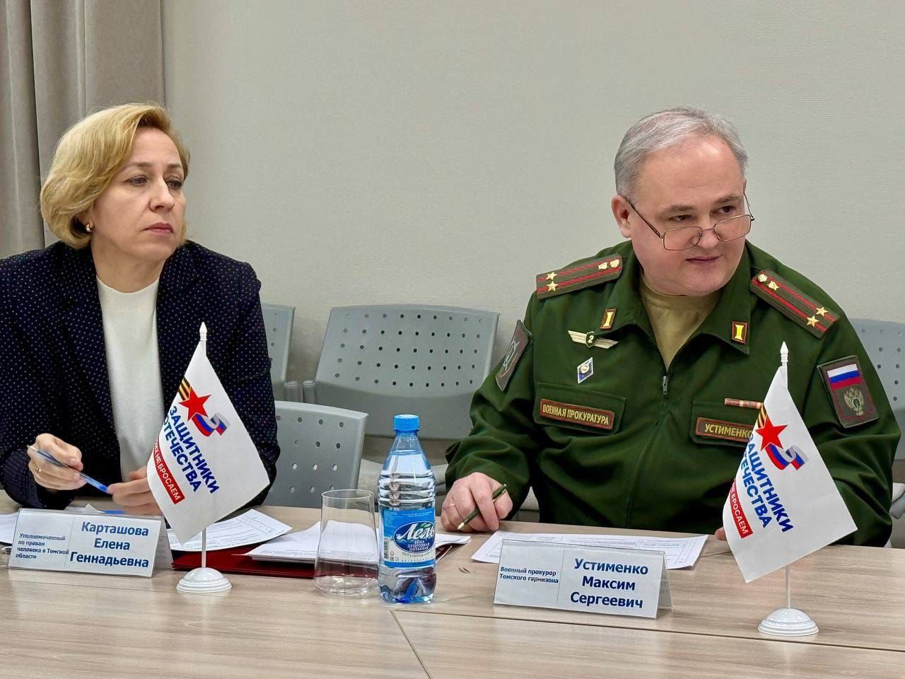Прием ветеранов боевых действий и членов семей военнослужащих вели: Уполномоченный по правам человека в Томской области Елена Карташова, Прокурор Томской области Сергей Ломакин, Военный прокурор Томского гарнизона Максим Устименко, руководитель Томского филиала Государственного фонда «Защитники Отечества» Ирина Муравьева.