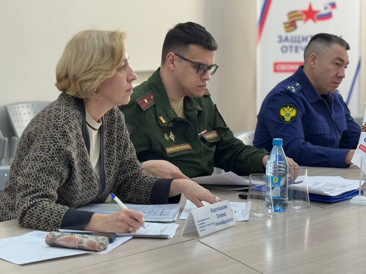 Прием ветеранов боевых действий и членов семей военнослужащих вели: Уполномоченный по правам человека в Томской области Елена Карташова, заместитель Прокурора Томской области Василий Воробьев, прокурор Военной прокуратуры Томского гарнизона Александр Храмцов, руководитель Томского филиала Государственного фонда «Защитники Отечества» Ирина Муравьева.