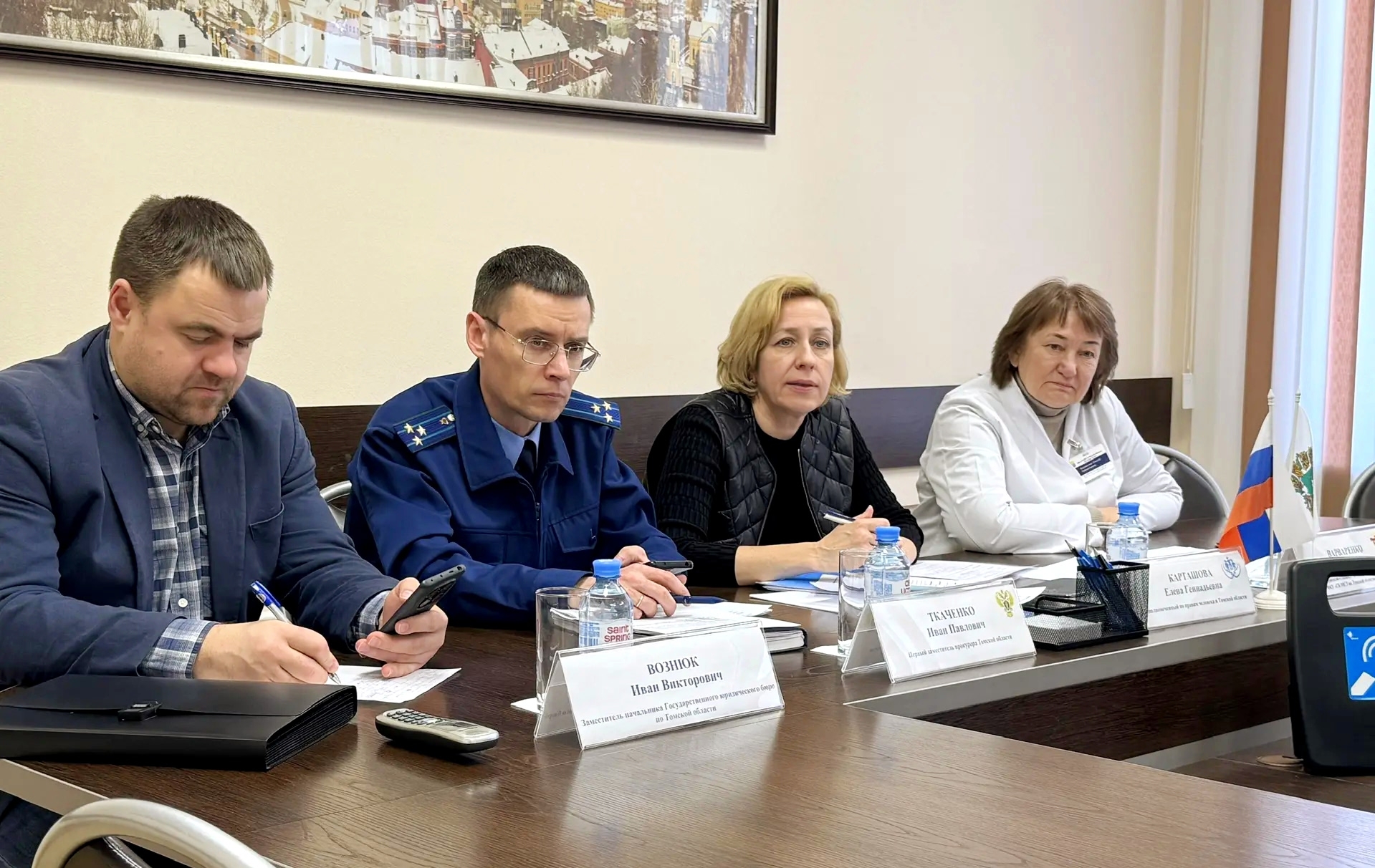 Прием вели Уполномоченный по правам человека в Томской области Елена Карташова вместе с и.о. руководителя регионального ГБ МСЭ по Томской области Татьяной Варваренко, первым заместителем Прокурора Томской области Иваном Ткаченко, заместителем начальника Госюрбюро по Томской области Иваном Вознюком, представителями отделения Социального фонда России по Томской области, областных департаментов здравоохранения, социальной защиты населения, труда и занятости населения и др.